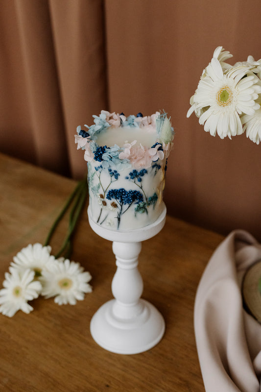 Botanical Dried Flower Blue Candle gift decor