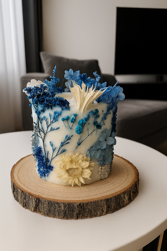 Botanical Blue Dried Flower Candle gift decor