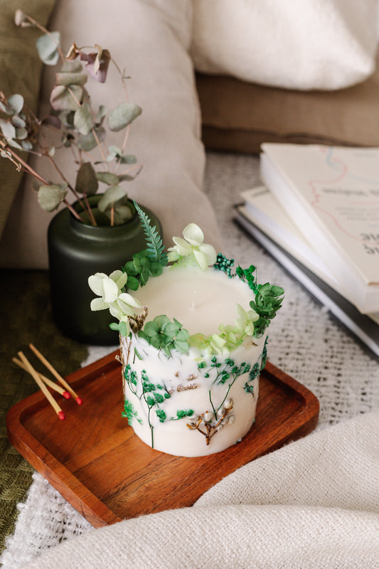 Botanical Green Dried Flower Candle gift decor