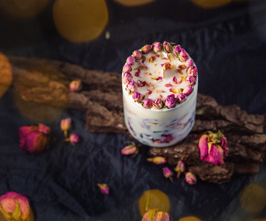 Botanical Rose Dried Flower Candle gift decor