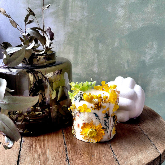 Botanical Yellow Dried Flower Candle gift decor